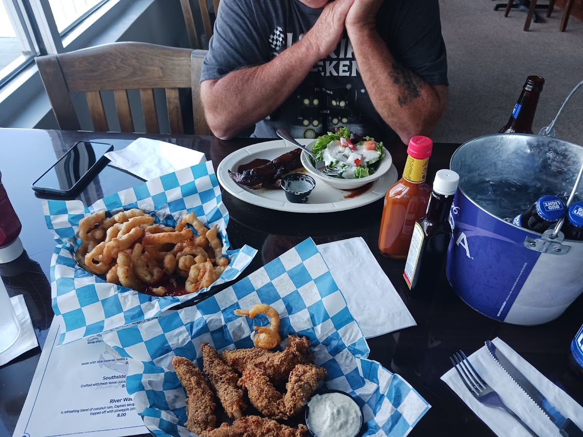 We wanted a nice but different experience for our Anniversary & just chill in between a storm rolling by. We were greeted immediately by a sweet host & sat where we requested. It was chilly so we asked to sit in a warmer space. They moved us to wherever we wished. Very accommodating! Our Server was Jessica-she treated us like gold! We ordered Catfish Fritters with a nice remoulade. Then a Caesar Salad that was very tasty & finished with Crab Cakes! Great ambiance inside & out. Live Music was setting up for the Annual Burn your socks & welcome flip flops party! Great place to dock your boat & grab a bite! Super convenient to the interstate & the Ironton/Proctorville OH area! Enjoy your experience on the Ohio River on an actual boat! There were some available docking spaces around but not sure if gasoline is nearby. See you at Schooners!